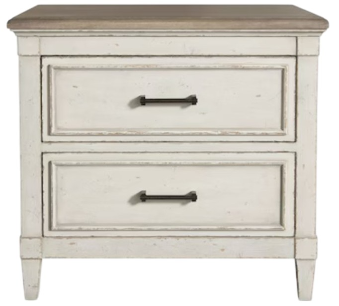 This is no ordinary nightstand. Enhance your bedroom with the Bella wood top nightstand, with an Aged Whitestone multi-step finish for the textured effect of a timeworn piece. The unique drawer pulls, finished in worn pewter, open two roomy self-closing drawers with dust dividers.Read More
