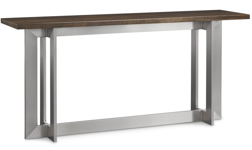 Whether you place it behind a sofa or along an entry or foyer, the Andover console table brings together elements of sturdy handcrafted wood and sleek brushed stainless metal for a smooth, refined touch. Hidden levelers ensure that the table sits sturdily on uneven surfaces. Select any Benchmade oak finish to make the table your own.