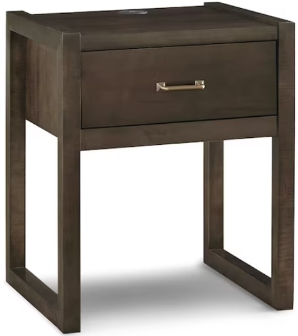 A single solid maple drawer is accented with a long metal bar pull, in your choice of antique pewter or brass finish. American craftsmanship shows in features like dovetail joinery and soft close drawer guides. Customize the look with your choice of BenchMade maple finishes, hand applied to bring out the natural character of the wood. A built-in wireless + USB combo charging dock adds function to form. The wireless port integrates seamlessly into the top, or pop it up to access three USB Type A charging ports.