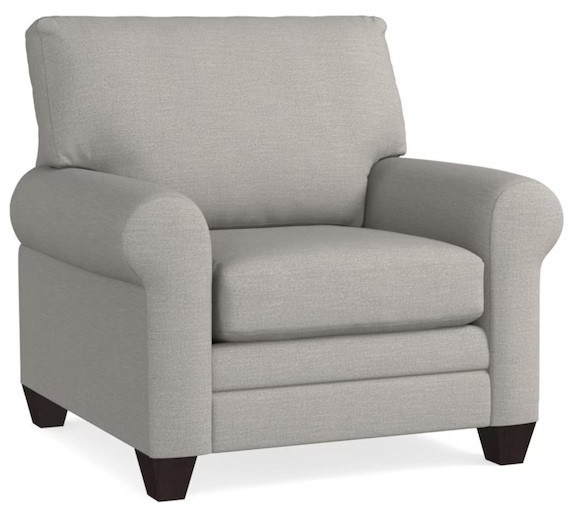Moderately scaled domestic upholstery collection that features a choice of arm styles, a loose box back, top stitched seat cushions, and tapered legs. Optional nailhead trim and leg finishes are available in-store only.Read More