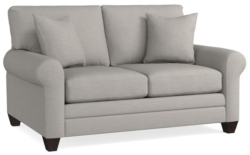 Moderately scaled domestic upholstery collection that features a choice of arm styles, a loose box back, top stitched seat cushions, and tapered legs. Optional nailhead trim and leg finishes are available in-store only.Read More