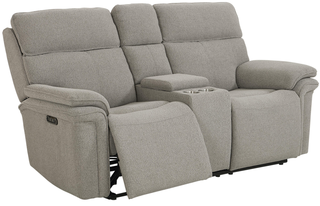 This power reclining loveseat features an adjustable headrest and smooth reclining function for added comfort. Upholstered in a soft fog color, it includes a center console with cup holders and storage, making it a convenient choice for relaxing, watching shows, or spending time together.Read More