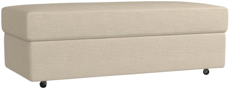 You'll welcome the fabric Ellery Storage Ottoman to your home. This roomy American Casual ottoman is a multi-tasker on wheels, with plenty of easy storage space. And sturdy casters allow you to easily move it from place to place, whether you need a foot rest or a place to set a snack tray.Read More