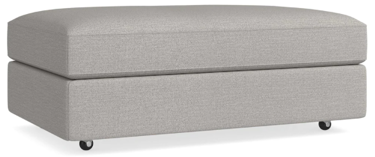 Webbed seating construction means it can comfortably pinch hit as a seat, too. Stash blankets, games, or whatever you like in its roomy concealed storage, with sturdy spring-loaded hinges and a soft fabric lining. Select either concealed wood legs in walnut finish or easy-rolling concealed casters. Choose your fabric from a range of possibilities.