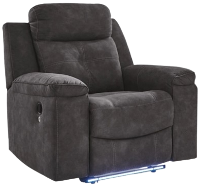 Seamlessly blend contemporary aesthetics and uncompromising comfort with this recliner. Its handsome charcoal-hued faux leather has a tailored appeal thanks to sizable stitching details. As for modern convenience? The simple one-pull reclining and ambient LED lighting encourage you to relax in style.Read More