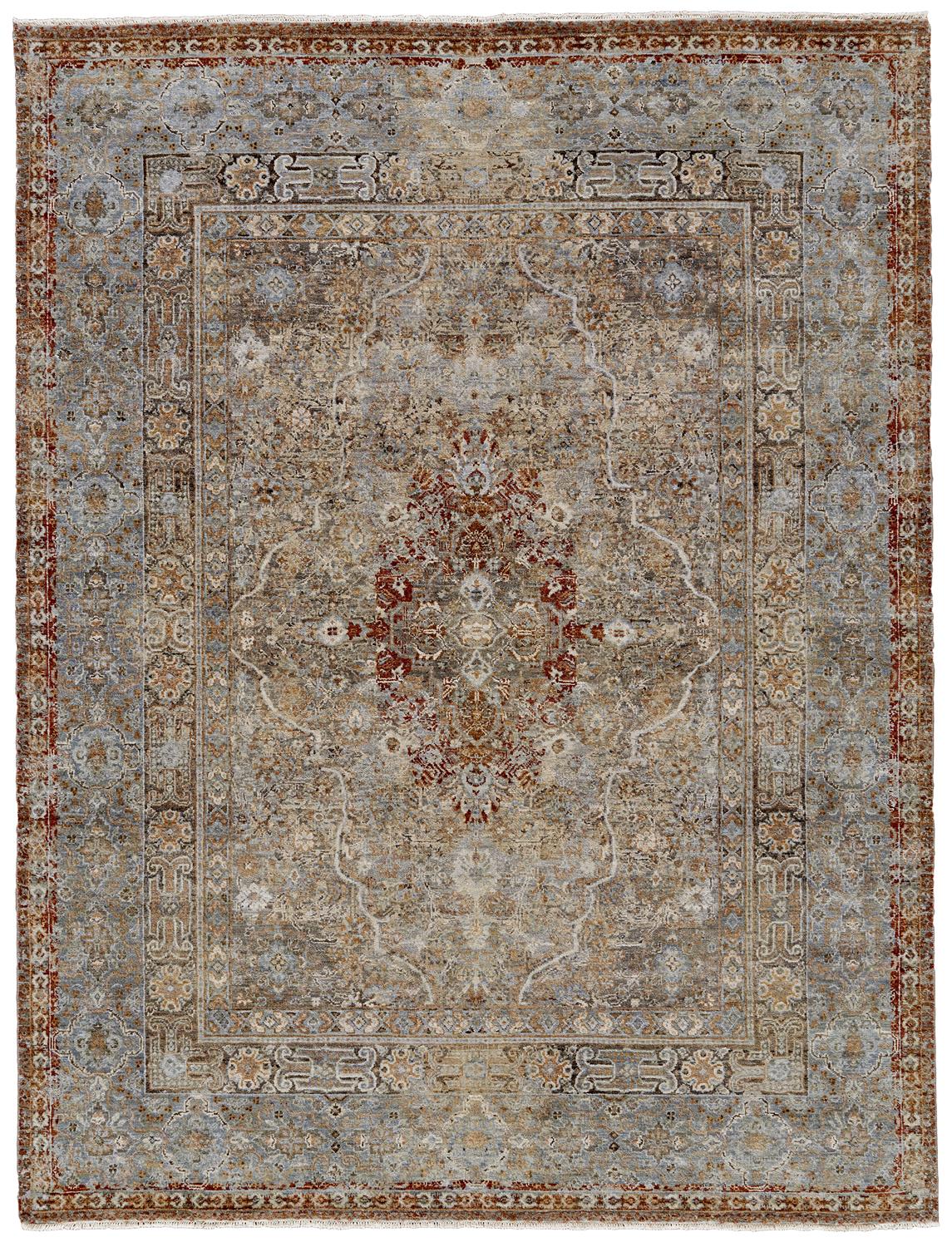 Monochromatic tones of gray accented by subtle pops of blue lend the Dalia Collection a timeless elegance. Hand-knotted in India with hand carded hand spun wool these designs feature intricate all-over patterns with weathered effects to lend a new spin to traditional motifsRead More