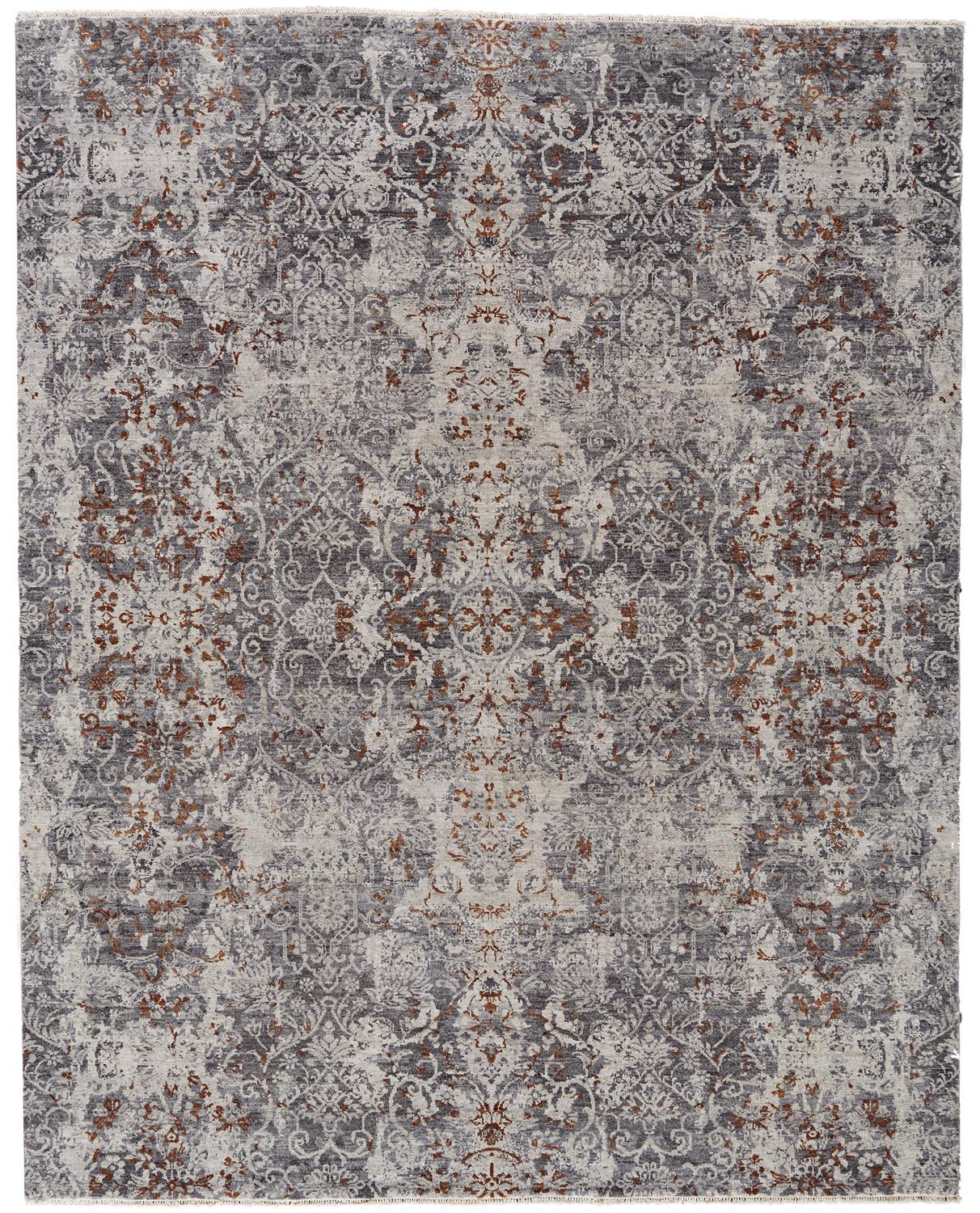 Monochromatic tones of gray accented by subtle pops of blue lend the Dalia Collection a timeless elegance. Hand-knotted in India with hand carded hand spun wool these designs feature intricate all-over patterns with weathered effects to lend a new spin to traditional motifs. These one-of-a-kind pieces will create settings of sophistication in any room.