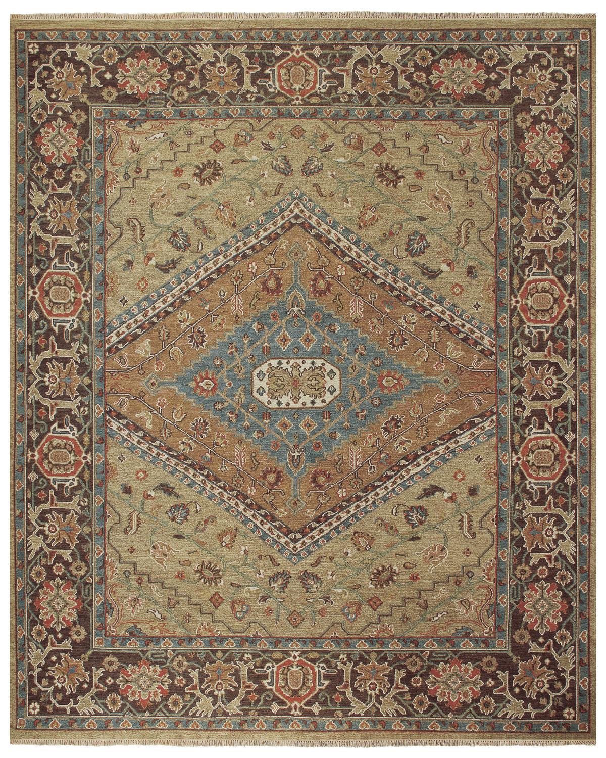 Old World sensibilities and a contemporary color palette unite in the Goshen Collection of hand-knotted Soumaks. Inspired by the classics time-honored patterns have been recreated in exquisite detail in muted tones of gold red brown and black with rich accents of terra cotta sage and cream.Read More