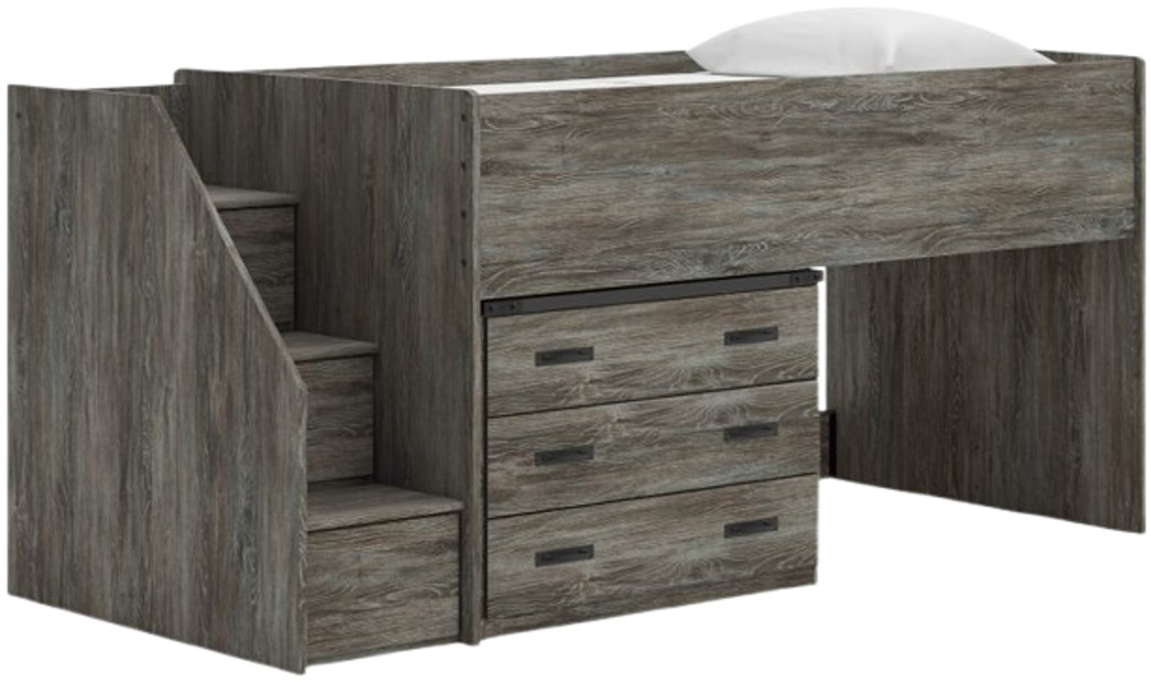 Cool, casual style is for all ages. With this twin loft bed with drawer storage, they get the function they need plus the refined design you love. Approachably neutral in a rustic warm gray, it’s adaptable enough to pair with an assortment of existing colors and room decor.Read More